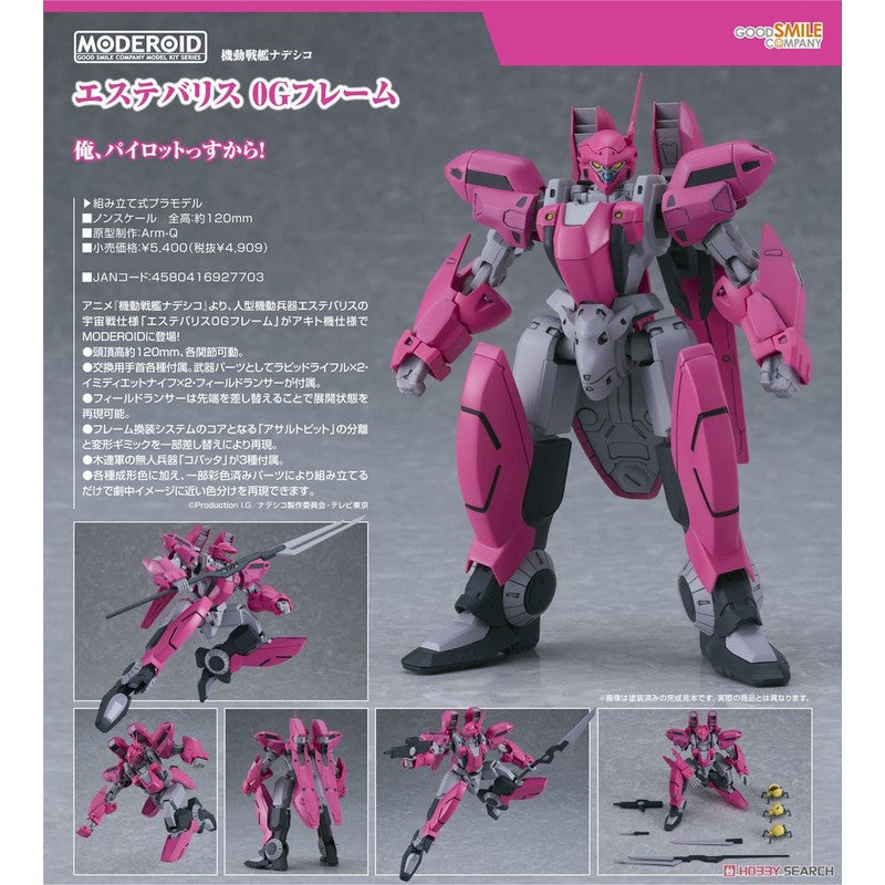 The Aestivalis 0G Battle Frame, the zero-gravity battle-spec humanoid mobile weapon from the anime "Martian Successor Nadesico," is joining the "MODEROID" model kit series from Good Smile Company! The kit is fully articulated for posability after assembly and includes interchangeable hands, two rapid rifles, two immediate knives, and a field lancer. The field lancer can be displayed in deployed mode by replacing the tip, and the frame replacement system core, known as the assault pit, can also be removed and transformed.