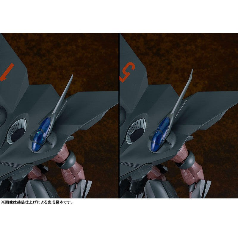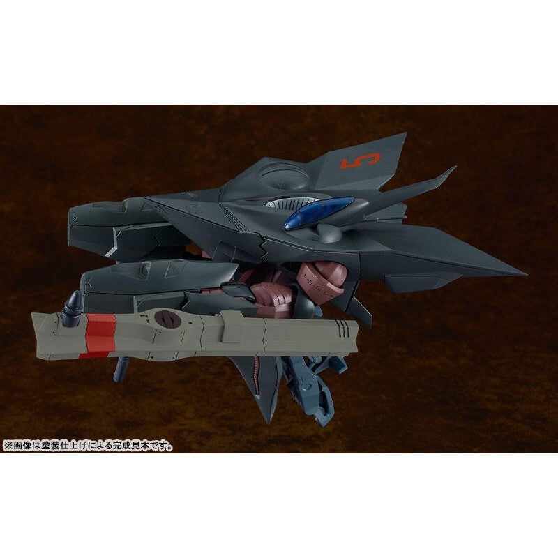 The mech can transform into its flight mode with interchangeable parts, and its parked state can also be recreated with additional parts. Two types of cockpits are included: a single-seat type and a dual-seat type. A pilot figure is also included. Waterslide decals for its markings are provided, and the kit is molded in color, making it easy to recreate this incredible mech just by assembling it.